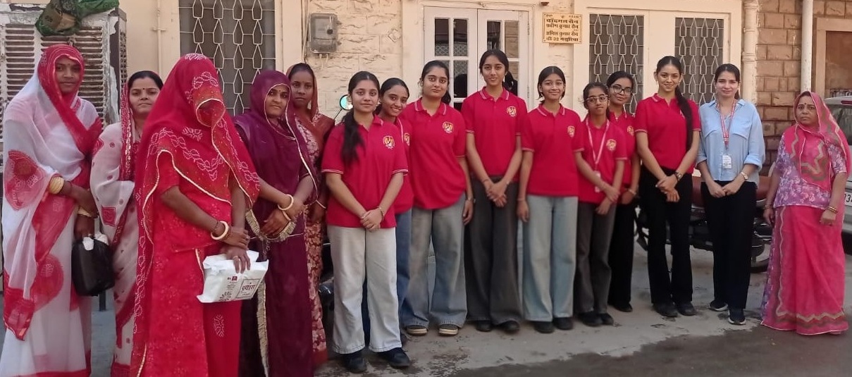 On 21st February 2026, Rajmata Krishna Kumari Girls’ Public School organized a meaningful community outreach initiative under the Hamara Prayaas Project, conducting a sanitary napkin distribution drive for rural women at the Beldaar basti 1 Masuriya, Anganwadi, Jodhpur. The initiative was led and carried out by Class IX students of Hamara Prayaas Club, reflecting their strong sense of social responsibility and commitment to community welfare. The primary aim of the drive was to promote awareness about menstrual hygiene and ensure access to safe and hygienic sanitary products for women in rural areas. During the visit, students interacted respectfully with the women, spreading awareness about the importance of menstrual health, proper usage and disposal of sanitary pads, and breaking common myths associated with menstruation. The distribution was conducted in an organized and sensitive manner, ensuring comfort and dignity for the beneficiaries. The initiative received a positive response from the village community and highlighted the school’s dedication to holistic education that extends beyond academics to social empowerment and meaningful community engagement.